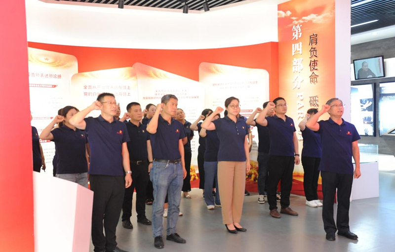 在宣誓廳,全體黨員干部面對(duì)鮮紅的黨旗,莊嚴(yán)宣誓,重溫入黨誓詞,深刻領(lǐng)會(huì)共產(chǎn)黨人的初心使命,進(jìn)一步堅(jiān)定了理想信念。